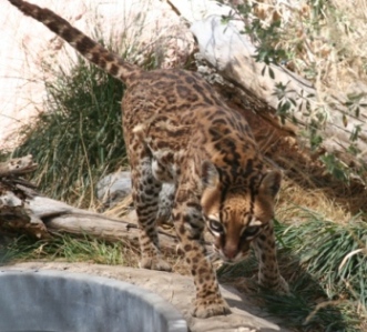 There were smaller cats to care for as well. There was Isis the ocelot and Jasmine the bobcat. I remember these two cats from my first visit back in 2002. They live together in the same enclosure. This enclosure was lush with greenery, and water features, just like an ocelot's world might be like. I found both Jasmine and Isis to be shy and reserving. But Isis, especially was very pretty, and she would at least let me get a good look at her. I have always been fascinated by ocelots, and it was a privilege to be able to observe and care for this rather rare-in-the-private-sector cat. There was also a new serval, named 'Tiny'. Tiny had only been there a short time, and was still adjusting to her new 'digs'. Although I never made friends with Tiny (she stayed out of sight most of the time), she was not uncomfortable around me during the times she was out.